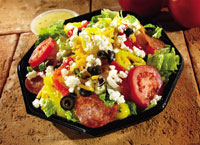 | Veggies: lettuce, tomato, onion, cherry peppers, sweet peppers, black olives, salt & pepper, oregano, oil and vinegar |
